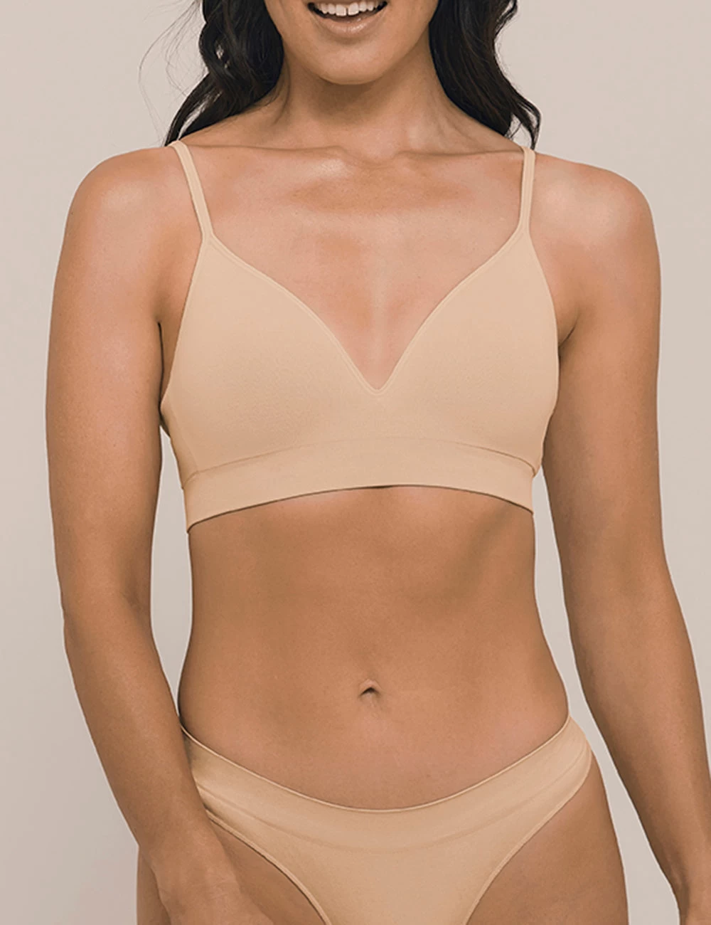 Bare Essentials by Ambra is the perfect wirefree bra. It features light moulded padding in the cup and adjustable straps. The Bare Essentials range is made using preconsumer recycled nylon which has been saved from landfill.