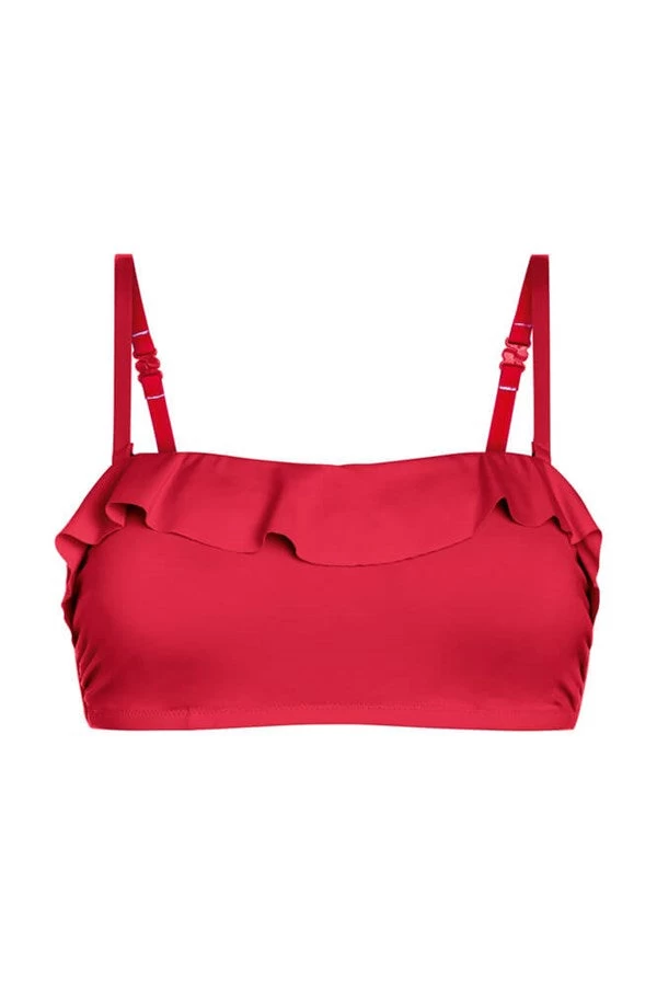 The colourful Malta bikini top from Amoena is bold and vibrant, perfect to wear with the matching Malta bikini bottoms. Decorative ruffles at the neckline add a gorgeous twist, flattering the bust.