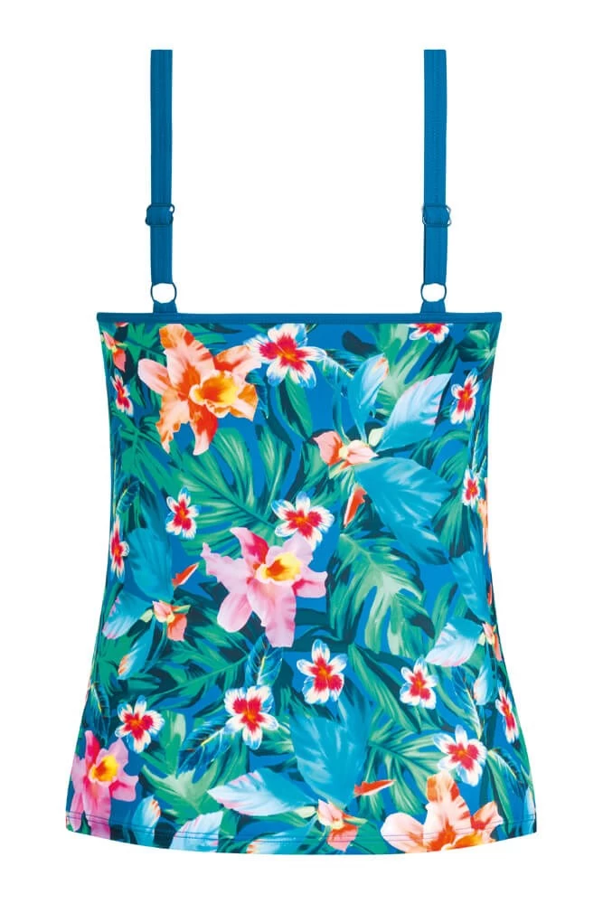 The vibrantly patterned Mauritius Tankini top is a fantastic way to brighten up your summer! With a tropical print in lovely teal, you’ll smile just looking at this top. Bilateral pockets accomodate swim prostheses if needed, and adjustable back straps ensure your comfort.Â