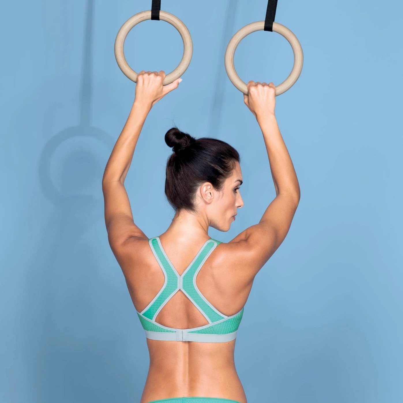Providing the maximum level of support, this fabulous sports bra from German company Anita will hold everything in place no matter what you do! A double layered cup consisting of terry cloth against the skin is part of an innovative sweat management design. Straps are located in perfect positions to relieve any tension from the neck, and are ergonomic and adjustable with inbuilt padding. There are matching briefs with the same sweat management properties in the wonderful Pool Blue colour too!Â