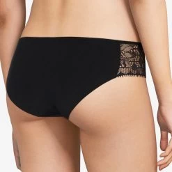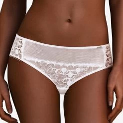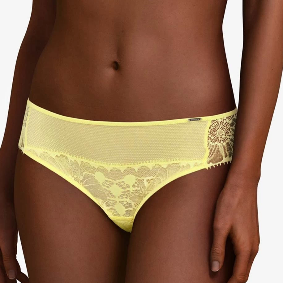 Chantelle’s new Day to Night collection mixes delicate florals and polka dots to give a fresh, feminine look. Both back and front are an opaque mesh for comfort and modesty, whilst the sides are formed from soft, sheer lace inserts. Wear with the matching Day to Night bra for a gorgeous set.Â