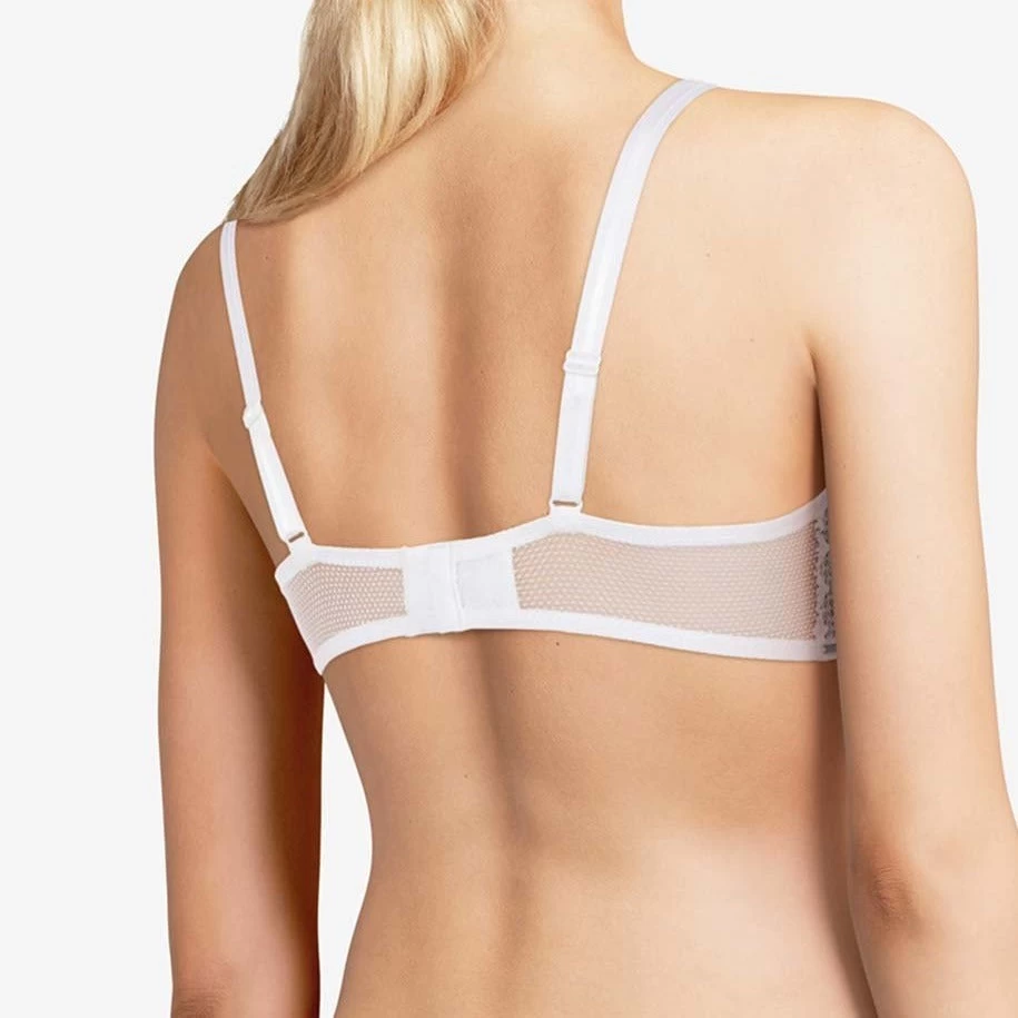 Chantelle’s new Day to Night collection mixes delicate florals and polka dots to give a fresh, feminine look. The half cup bra has lace cups lined with tulle, a straight back and adjustable straps. The neckline accentuates the curve of the bust, whilst underwire provides support. Wear with matching Day to Night briefs for a gorgeous set!Â