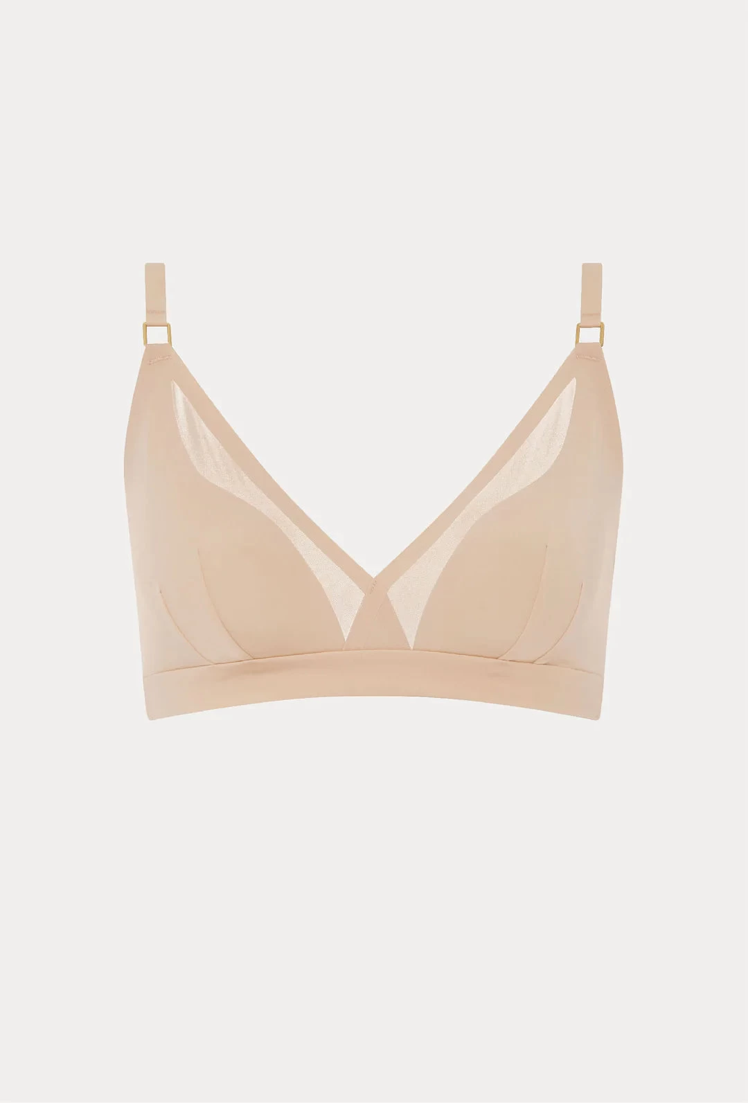 - Feminine details with a wrap effect between the breasts and rectangular buckles at the base of the straps