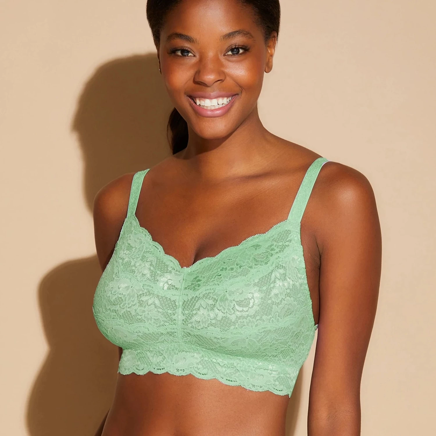 Made in Italy by luxury lingerie brand Cosabella, this beautiful bralette is a must have if you’re curvy! It’s specifically made for a DD cup and up! The bralette is made of delicate floral lace with a stunning scalloped edge and includes adjustable straps for a better fit. The cups are lightly padded for coverage. You can wear it with any of the Never Say Never collection from Cosabella for a beautiful matching set!Â