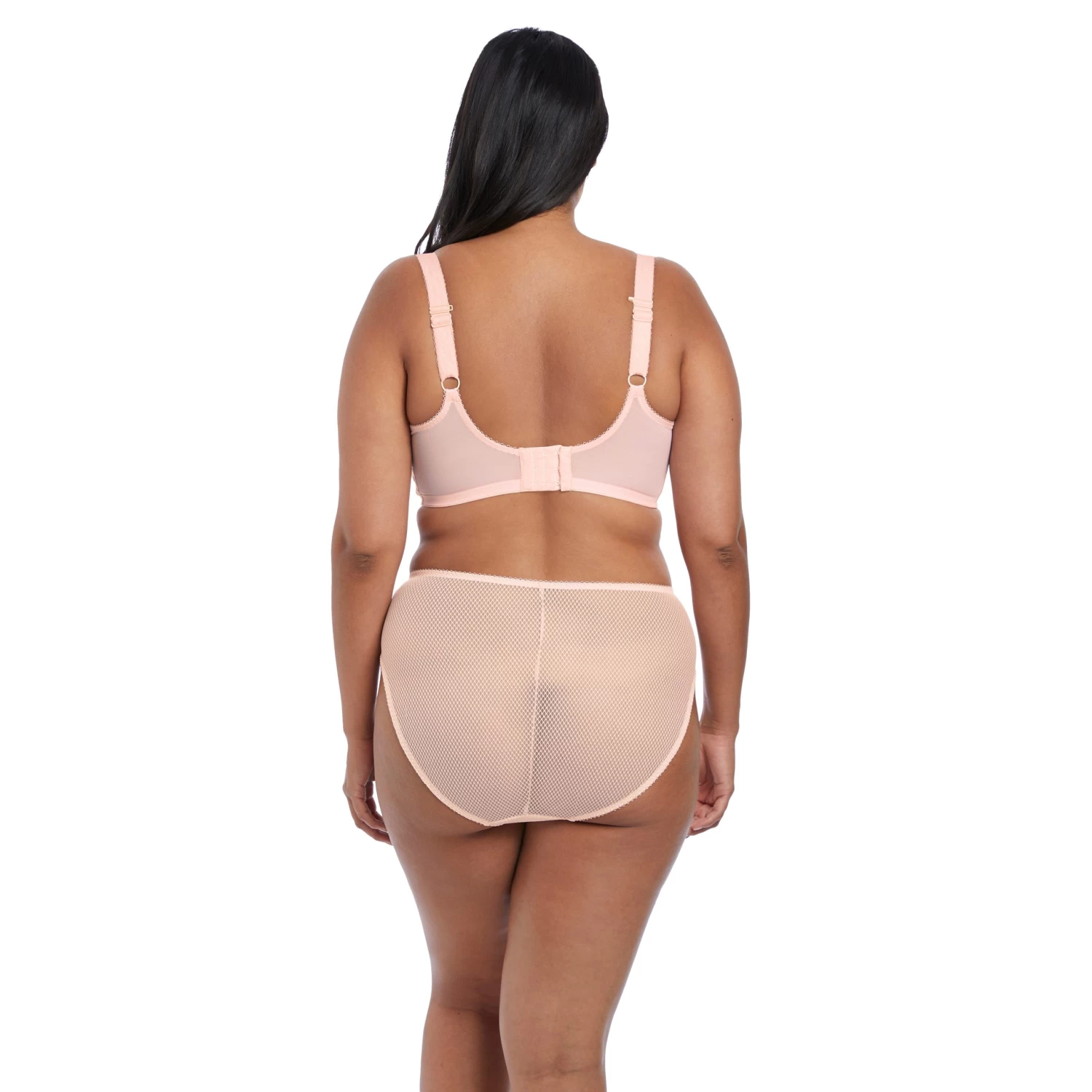 Bright and youthful, Charley in Ballet Pink combines a light diamond mesh fabric with stretch lace, and features a heritage inspired meadow flower embroidery across select pieces. The low centred front gives plunge without push up, and a banded underwire and three section cup both provide forward shape. There is a moveable J-hook on the back to allow adjustment to a racer back.Â
