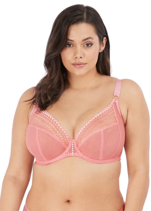 The beautiful Matilda bra from Elomi is designed with a low centre, providing plunge without push up. The three section cup and side panel give a fantastic forward shape with good uplift and separation. The flexible sweeping back to allows for easy adjustment to a racer back with a movable J hook.Â