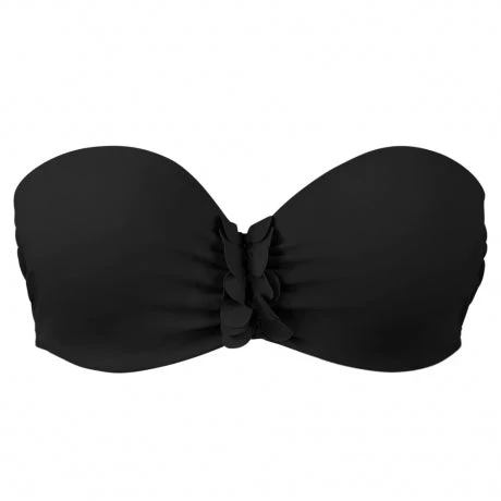 The Dream Bandeau Bikini from French lingerie brand Empreinte is a simple wardrobe must have with a beautiful twist. Padded black cups and a sleek band around the chest are complemented by the addition of floral inspired ruched fabric between the cups. Silicone at the edge holds the bikini top tight against your skin and provides support. Wear with the matching briefs for a lovely set.