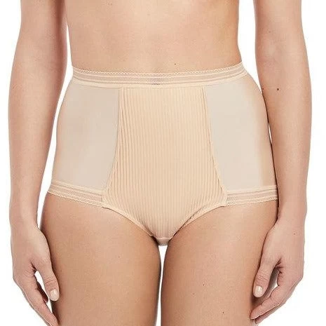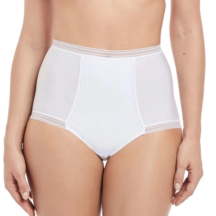 Designed to match the lovely Fusion bra from Fantasie, these high waisted briefs are made from soft fabric for a smooth and comfortable fit. The jacquard fabric is subtly striped, whilst a line of flat elastic at the waist and leg gives a smooth finish. The briefs gather at the back in a centre seam for great shape.Â