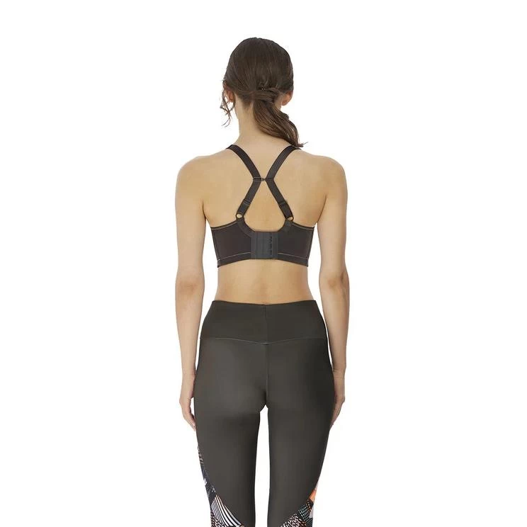 Style and performance is yours with the Sonic Moulded Sports Bra , enabling you to achieve your goals with complete confidence. Moulded cups in a breathable spacer fabric, wide curvature wires and mesh panels offer an uncompromising level of comfort and support. Cup sizes B to H have a J-hook for conversion to a racerback.Â