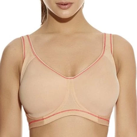 Style and performance is yours with the Sonic Moulded Sports Bra , enabling you to achieve your goals with complete confidence. Moulded cups in a breathable spacer fabric, wide curvature wires and mesh panels offer an uncompromising level of comfort and support. Cup sizes B to H have a J-hook for conversion to a racerback.Â