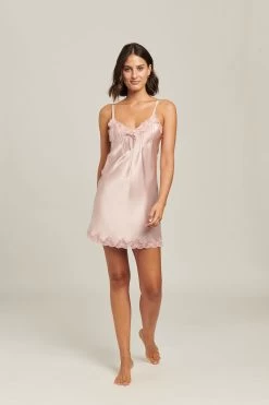 This beautiful silk chemise from luxury silkwear designer Ginia is simply stunning. Cut to flatter the figure, and tucked to accentuate the bust, it drapes beautifully. The chemise falls to mid thigh, and features a beautiful silk brocade across the bust.Â