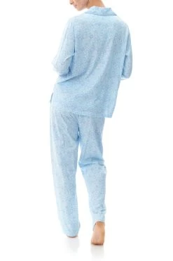 The Givoni Jean Pyjamas are made of soft cotton jersey in blue with a pretty blue and pink floral print. Â They have long sleeves, a revere collar with button front and breast pocket. Â The pants have an elasticated waist with drawstring for comfort. Â