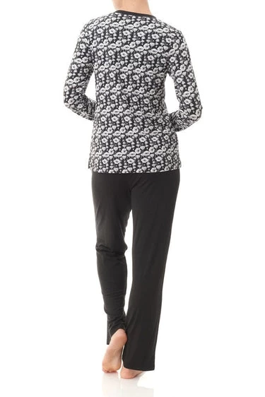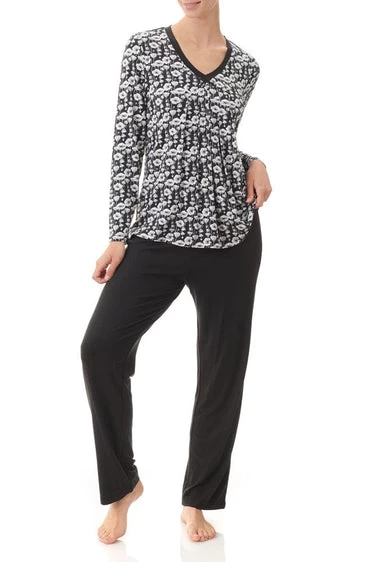 The new Jenna pyjamas from Givoni are made from an ever so soft viscose that drapes beautifully across the body. The striking print of the top is white florals set against black, with an accent trim at the v-neckline. The pants have an elasticated waist with drawsting for comfort. Â Wear through autumn and winter to keep warm and cosy.
