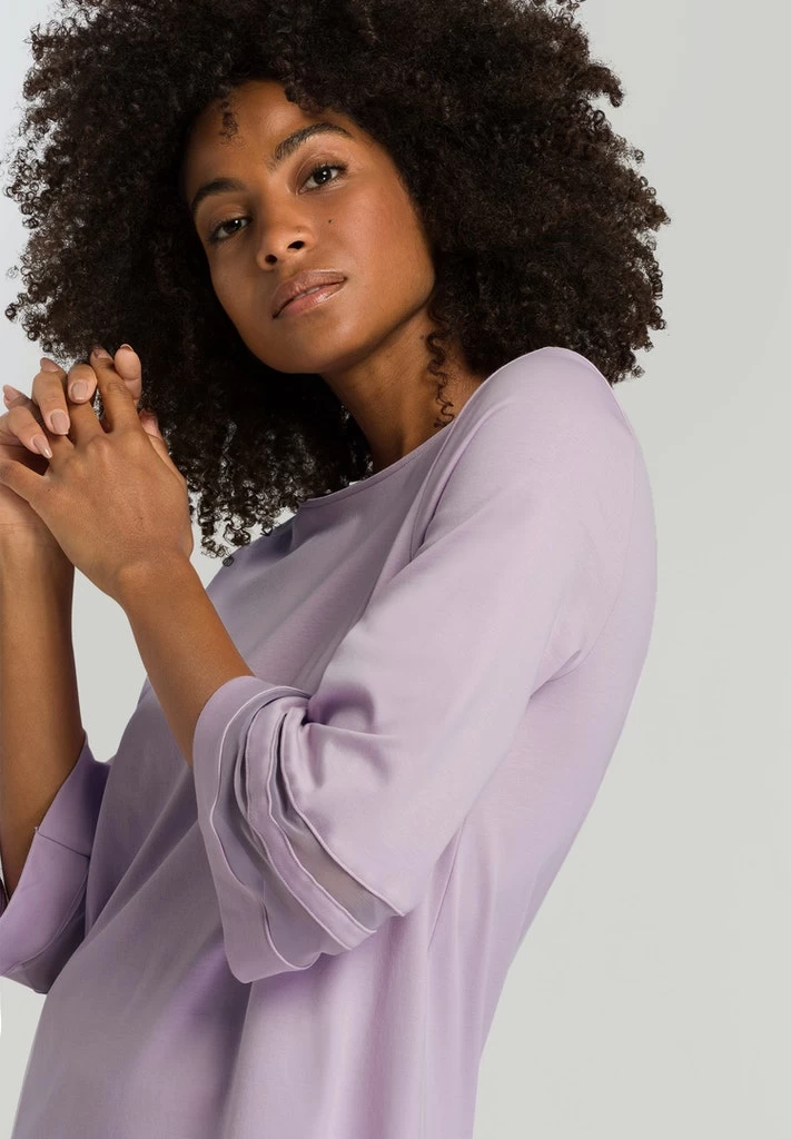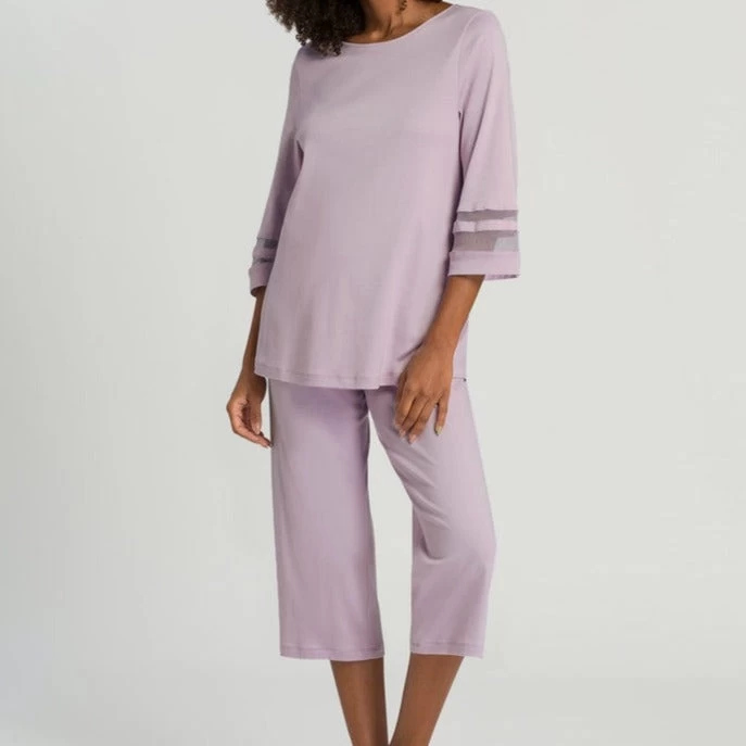 Luxury Swiss sleepwear and loungewear brand Hanro brings the delightful “Delia” collection to your wardrobe this season. Curated from 100% organic cotton with tasteful tulle inserts, these gorgeous 3/4 sleeve pyjamas are a must have for everyone. The fabric is beautifully soft against the skin, with a soft fall to flatter the figure and allow air flow all night long. A classic round neck flatters the bust, while fluted sleeves hang to just below the elbow. Sheer tulle is this seasons stand out highlight, and accentuates the arms in an easy, breezy manner. The pants are also 3/4 length, with a loose, comfort forward fit.