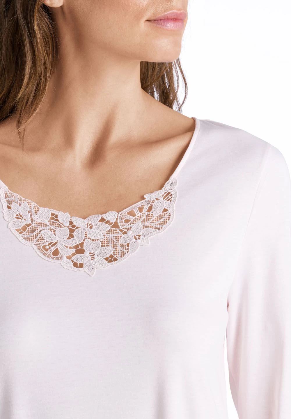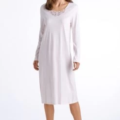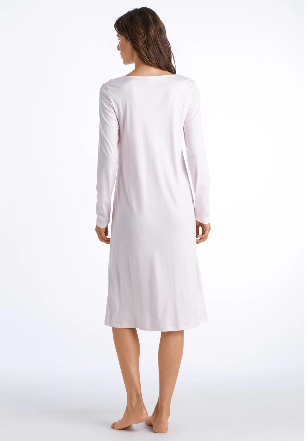 This gorgeous Dorea nightdress is made with the upmost care and skill by premium Swiss sleepwear brand Hanro. It sits smoothly against the skin, made from a durable and superbly soft mercerised cotton. A decorative piece of lemon tree inspired floral embroidery sits at the centre of a rounded neckline, giving an elegant touch to the classic sleepwear staple. The nightdress has long sleeves, and is 110cm long, reaching to just below the knee.