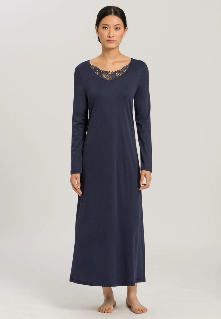 The brand new Felice collection from luxury Swiss sleepwear and loungewear brand Hanro combines ultimate comfort with timeless elegance. This long sleeved nightdress has been made in Austria from the softest of mercerised cotton. The dress flows beautifully on the body, accentuating and softening the figure in all the right places. Floral embroidery at the neckline is a staple of Hanro designs, bringing gentle beauty without compromising on fit or feel. The nightdress is 130cm long, falling to just above the ankle (depending on your height).Â