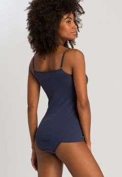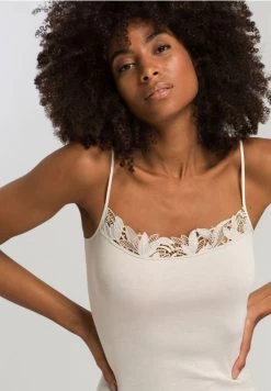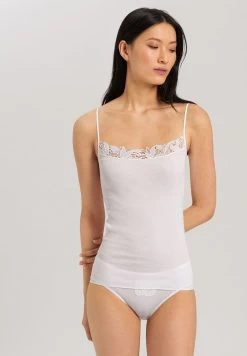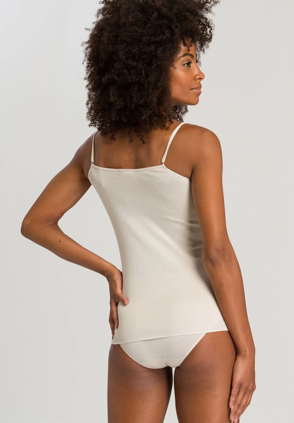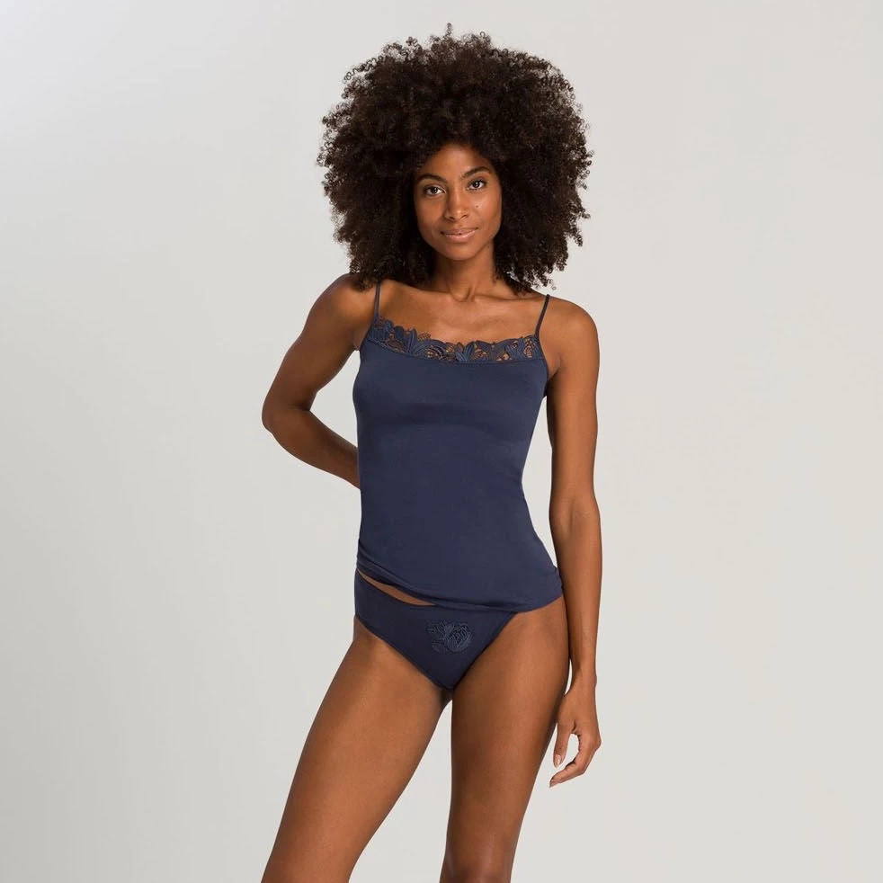 The brand new Felice collection from luxury loungewear brand Hanro combines ultimate comfort with timeless elegance. This spaghetti strapped singlet top is made in Austria from the softest of mercerised cotton. The style is designed to sit flush against the without hems or seams, and a gentle rib throughout the fabric assists this. Floral embroidery at the neckline is a staple of Hanro designs, bringing gentle beauty without compromising on fit or feel.Â