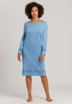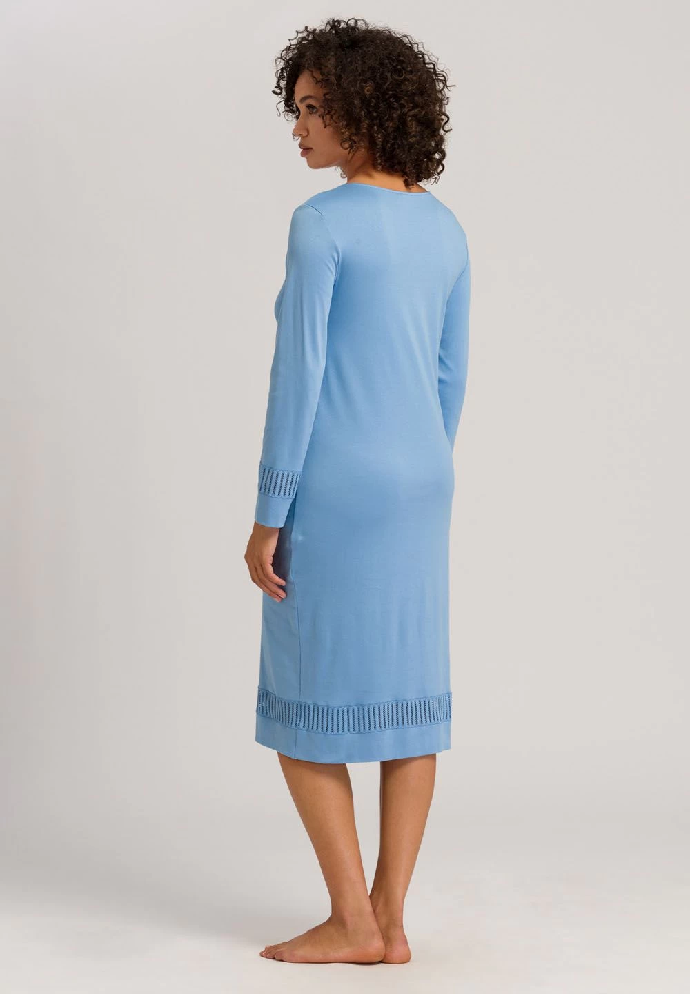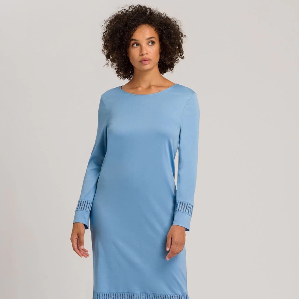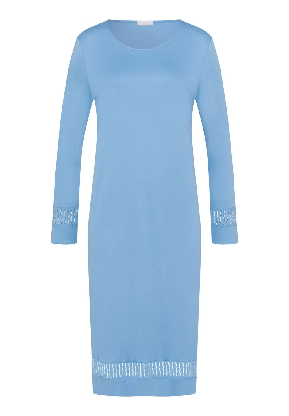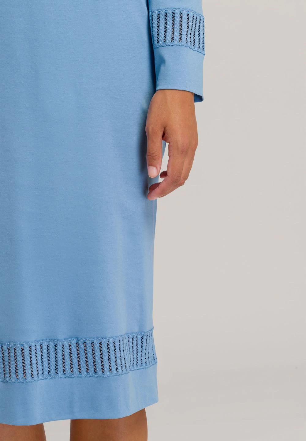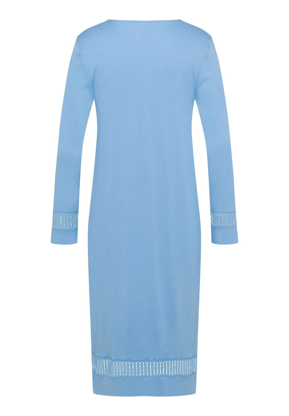 The Hanro Gaia long sleeved nightdress has a modern, elegant cut. Lace inserts with a crochet look give detailing to the cuff and hem. Made from pure mercerised cotton to give you the perfect night’s rest.