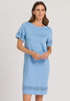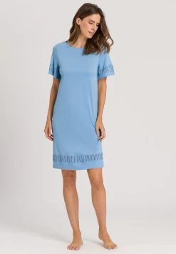 The Hanro Gaia short sleeved nightdress has a modern, elegant cut. Lace inserts with a crochet look give detailing to the cuff and hem. Made from pure mercerised cotton to give you the perfect night’s rest.