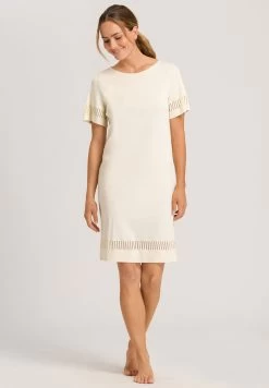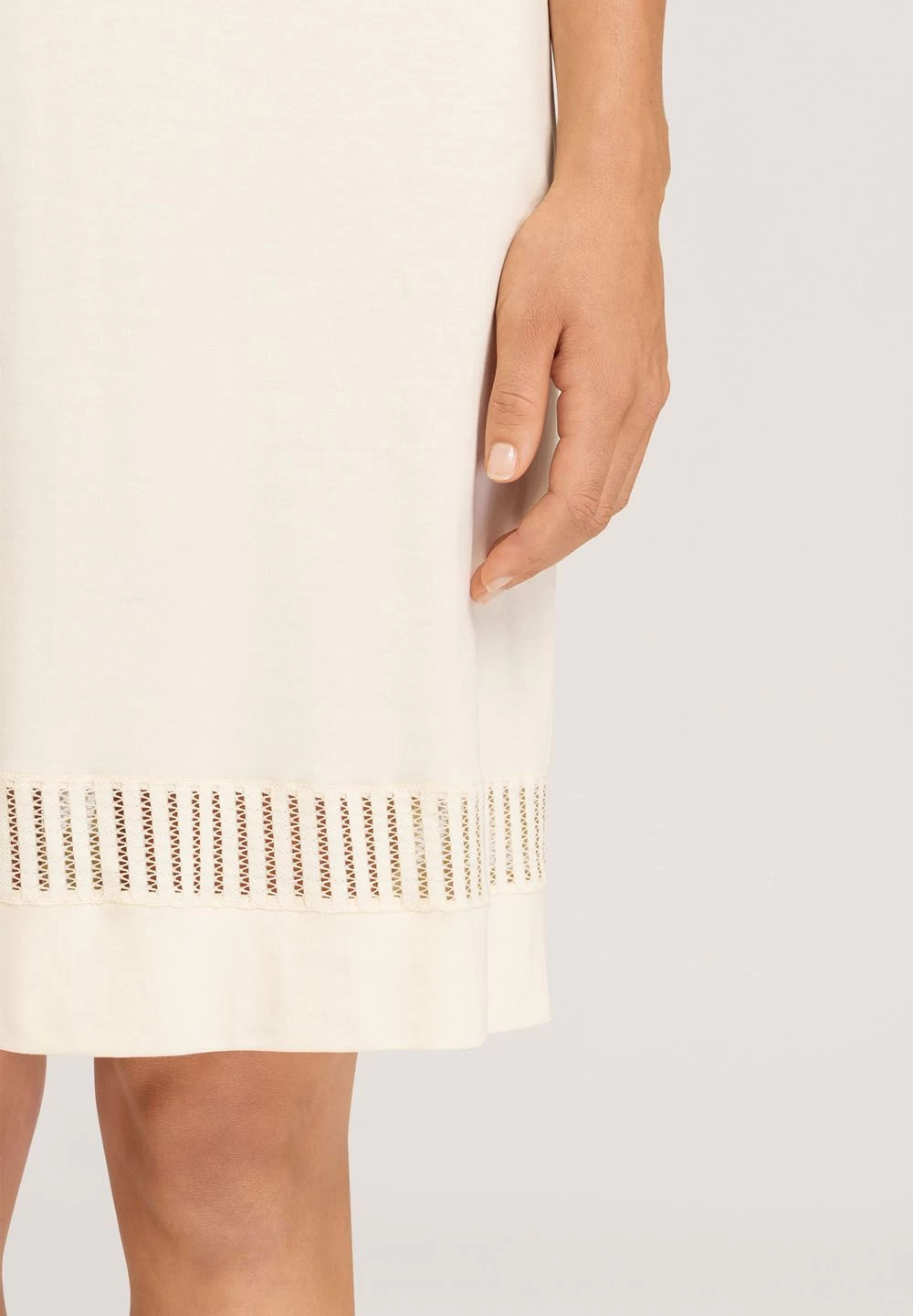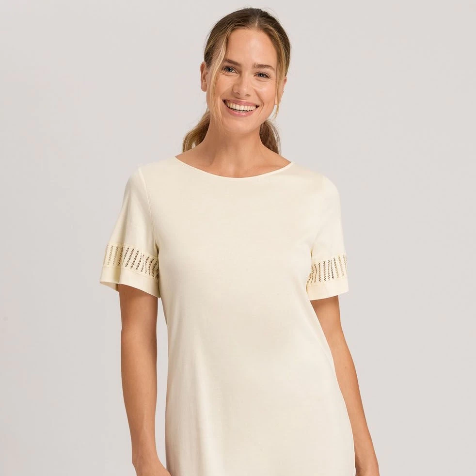 The Hanro Gaia short sleeved nightdress has a modern, elegant cut.  Lace inserts with a crochet look give detailing to the cuff and hem.  Made from pure mercerised cotton to give you the perfect night’s rest.