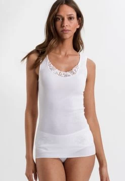 The Hope tank top from luxury Swiss sleepwear and loungewear brand Hanro is a beautiful cotton that sits softly against the skin all day, or all night, long. The wide shouldered singlet also features divine floral embroidery from Austria at the scoop neckline, and is otherwise seamless and without hems, for ultimate comfort.