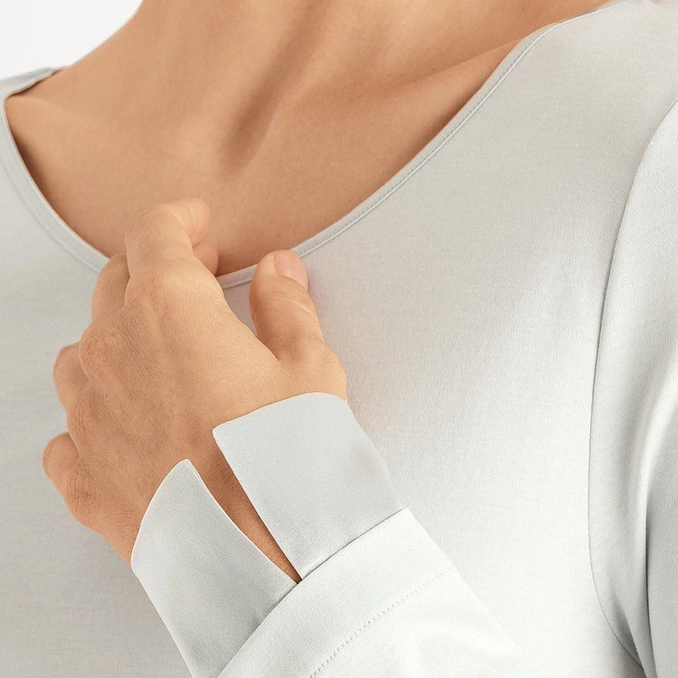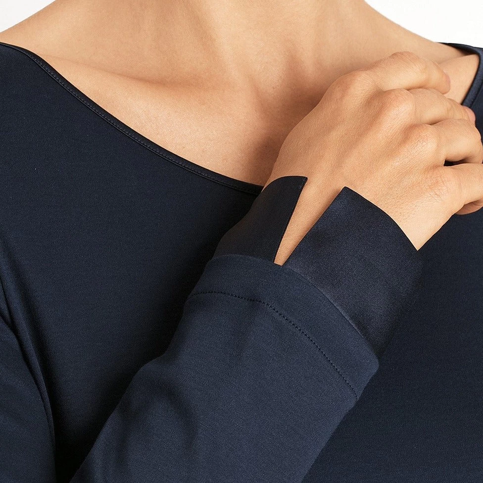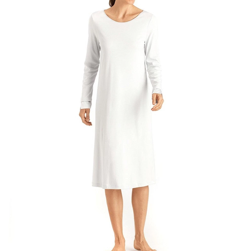 This short sleeve nightdress from luxury brand Hanro is simple and elegant, perfect for lounging or sleeping. A stunning silk insert at the cuff steals the show. At 100cm, it reaches just above the knee.Â