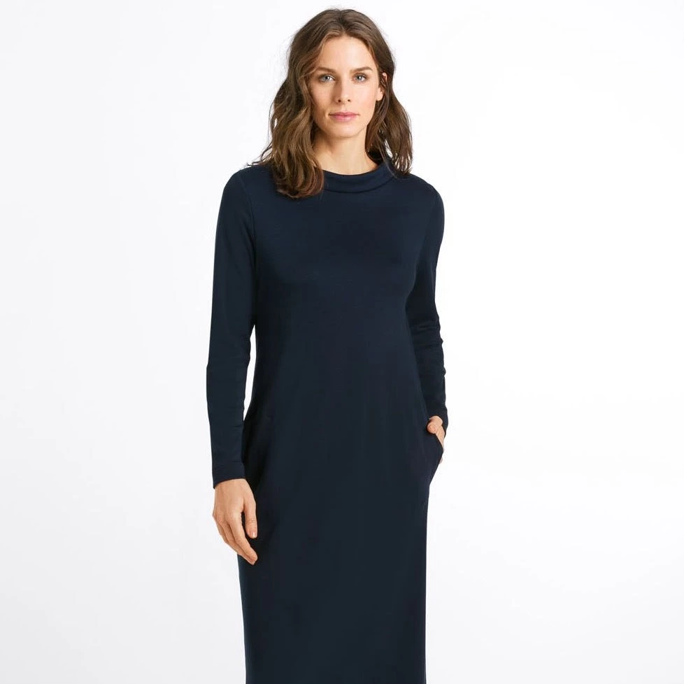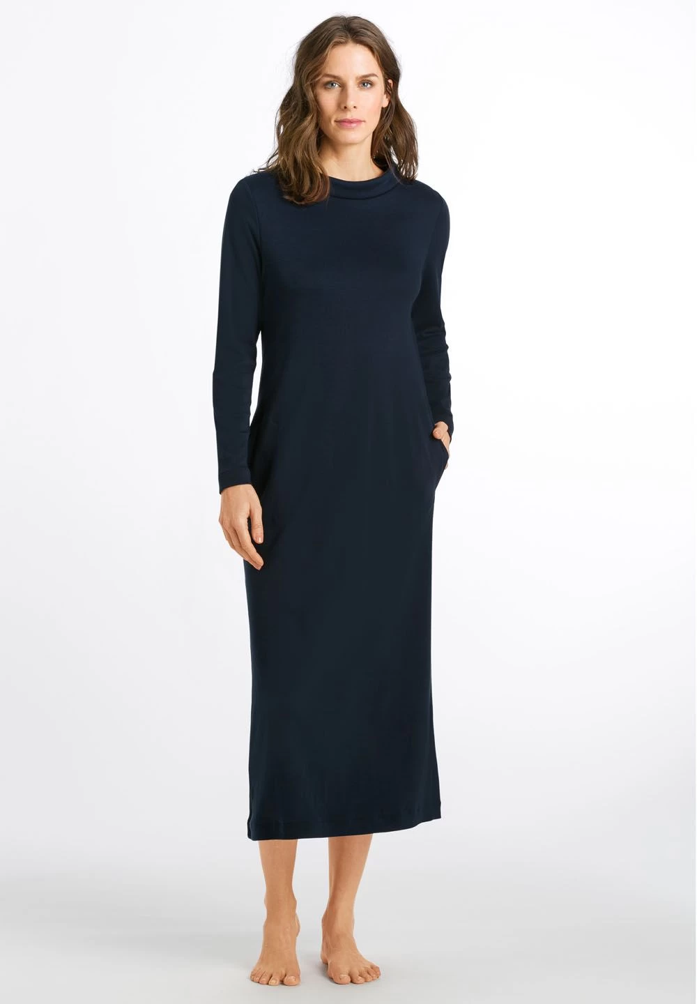 This luxurious cotton nightdress from Swiss brand Hanro is this seasons solution to bridging lounge and sleepwear. The flattering shape follows the figure from the shoulder to the bottom of the leg, with a trendy (and warm!) raised collar. This nightdress also has every woman’s most wanted feature… pockets! It’s made of an ever so soft cotton interlock fabric with a brushed finish inside for the smoothest of feelings against your skin.