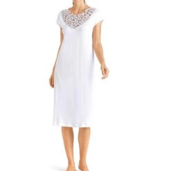 The perfect companion for mild summer nights is this short-sleeved, 110 cm long nightgown. Made of a softly flowing cotton with a stunning embroidered neckline, you won’t want to take this off.Â