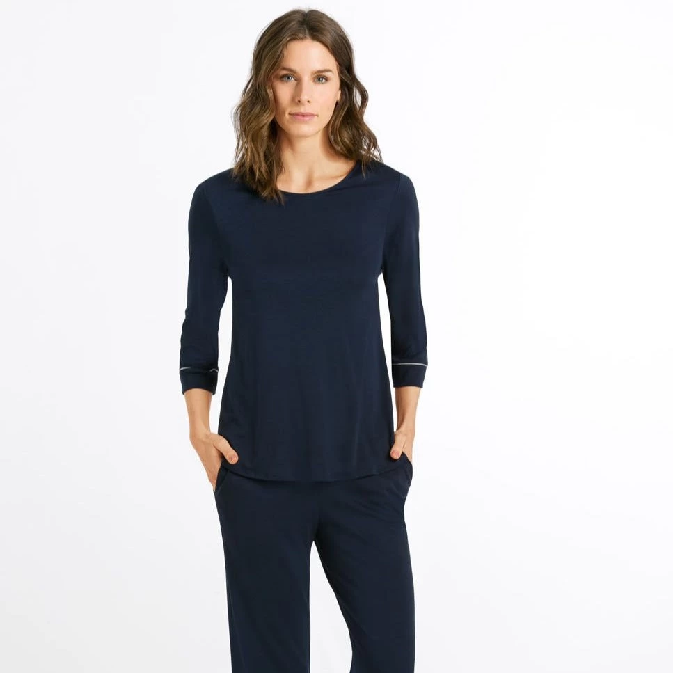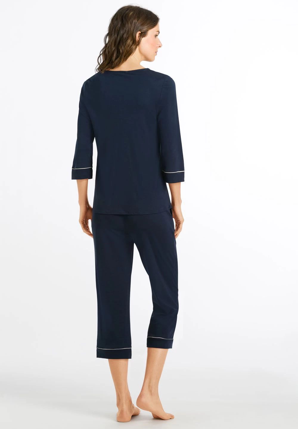 The Natural Comfort crop pyjama from luxury Swiss sleepwear brand Hanro is part of a new generation of sleepwear, made from sustainable Lyocell fabric. This unique fabric is breathable and regulates temperature perfectly with moisture wicking properties, all of which ideal in our hot Australian climate. The fabric feels soft and supple against the skin, and with both sleeves and legs cropped, the reaches just below the elbow and ankle.