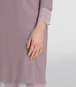 - Tulle lace on the sleeves and hem adds a touch of lightness
