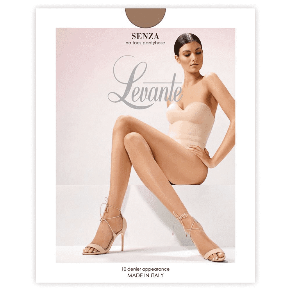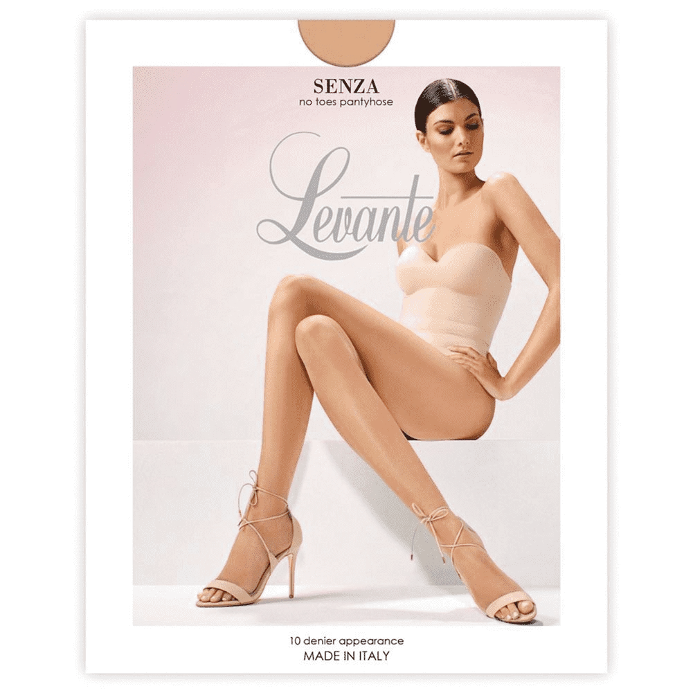 These Levante pantyhose are toeless, perfect for wearing with open toe shoes. A 10 denier ultra sheer appearance gives a barely there smoothing look. These are sheer all the way to the waist, with a cotton gusset for comfort.Â