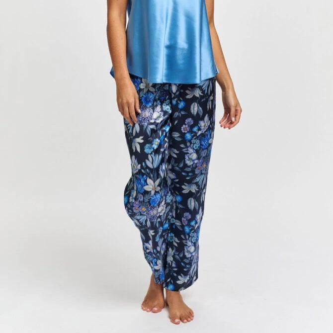 These lovely silk pyjama pants from Love & Lustre are patterned with the beautiful Stately Bouquet Blue print from Liberty London.