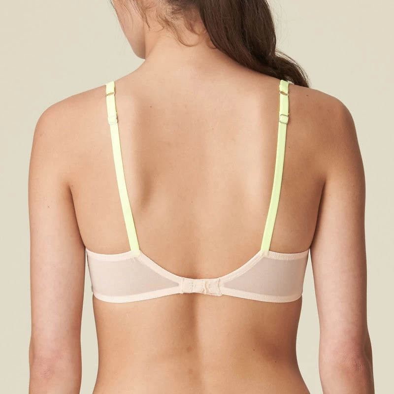 This fantastic balcony bra with seams is a nod to the stylish triangle bra but still retains the comfort and feminine fit of a padded balcony style. The embroidery in flashy and bold leopard print yellow is eye catching and bold. Why not wear with matching briefs for an absolutely sensational set?