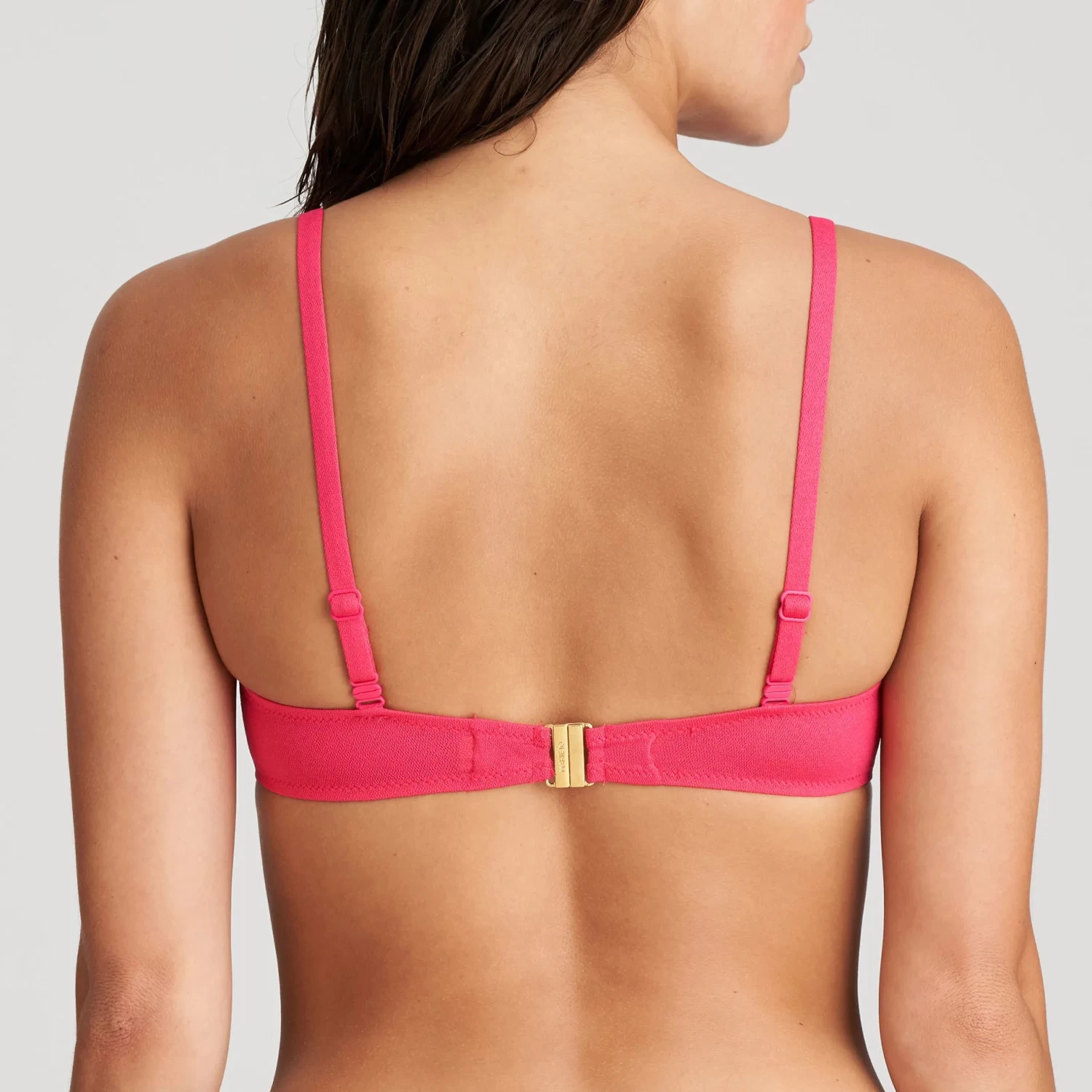 Do you love soaking up the sun in a strapless bikini? Then we have the perfect style for you from luxury lingerie brand Marie Jo. This elegant bikini has flirty pleats on the cups and a decorative detail on the centre gore. The shoulder straps are removable. This environmentally conscious bikini top is produced with 30% of recycled yarns. Freesia is a punchy raspberry pink. A feel-good summer colour!