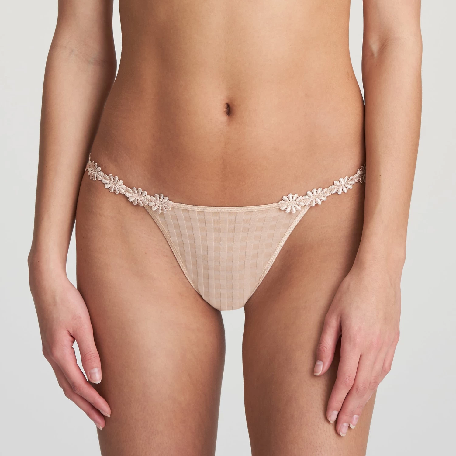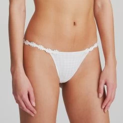 A playful thong that is opaque in the front. The sides of the hot pants are decorated with elegant floral embroidery. A soft band has been inserted under the embroidery for the necessary comfort.