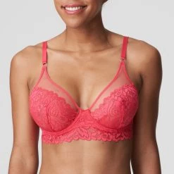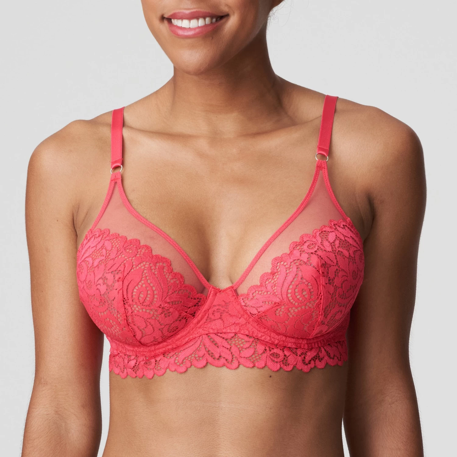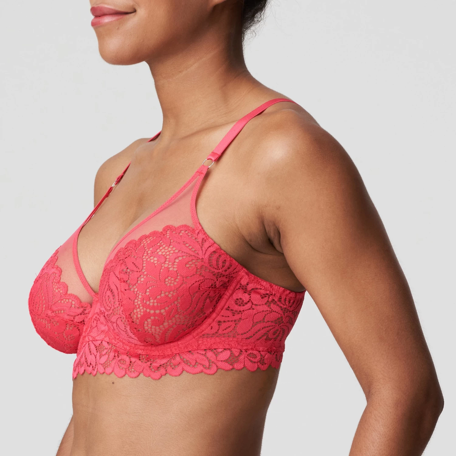 A beautiful pop of colour, the Elis longline bra from luxury Belgian lingerie brand Marie Jo is perfect to warm you up inside and out. Featuring the softest of lace in a beautiful floral design, the bra is supportive yet effortlessly comfortable. A high apex joins comfortable straps with the stylish lace, which falls slightly lower than the underwire for a vintage longline silhouette. Why not pair with the Elis collection briefs for a stunning set?Â