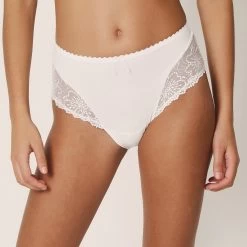 Elegant high-waist briefs with shimmering embroidery that creates a light and feminine look that lengthens your silhouette. Completely opaque at the back for modesty. The perfect choice if you love comfort with an elegant look! Wear with any of the lovely Jane bras.Â