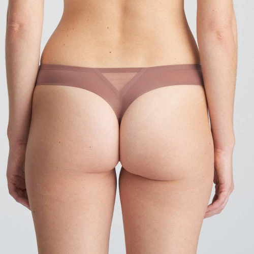 The Louie Thong Brief from Marie Jo Lingerie is a perfect every day brief. Made from a combination of ever so soft microfibre and airy tulle, the brief sits beautifully flush against the skin. The innovative fabric allows breathability – perfect for a hot summer day. Pair with the matching Louie heart shaped bra for a great set.Â