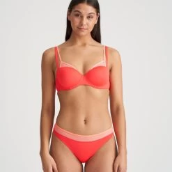 The Mariko Rio Brief from Marie Jo – Flirty, summery briefs with tulle trim at the waist. Fruit Punch will give you instant summer vibes. It’s a mix of flashy neon and raspberry red. Pair with the Mariko Padded Deep Plunge Bra for a happy playful set!