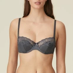 Elegant and feminine, the Meryl bra from Marie Jo is the definition of beautiful. Featuring a half padded half lace cup in a flattering balcony style, Meryl is eye catching in the best of ways. Delicate guipure lace on the cups and straps is alluring, whilst a soft microfibre band provides optimal comfort, allowing you to wear this all day long. Pair with matching briefs for a simply stunning set!Â