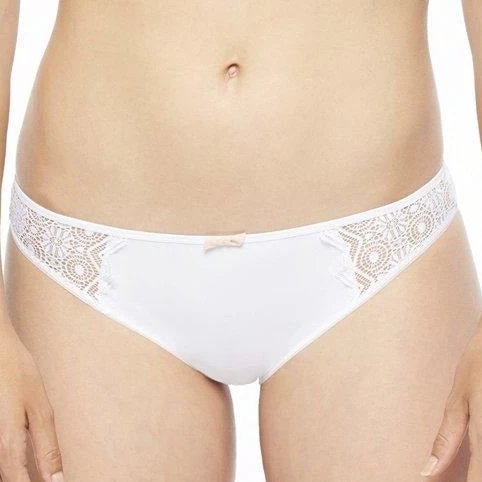 These beautiful bikini briefs are the perfect match for both the Georgia Bralette and Half Cup Bra. Featuring a modest front and back, these briefs have a delicate lace insert at the hip, hinting at what can be found on the matching bras. Wear the matching set and feel beautiful all day long.Â