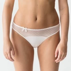 These divine briefs feature the most elegant of design. With sheer tulle across the front and a bow adorning one side, they exude sensuality. The thong style is skimpy and revealing, perfect for wear on special occasions. Pair with the beautiful Divine strapless or full cup bras for a matching set.Â