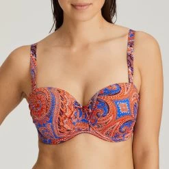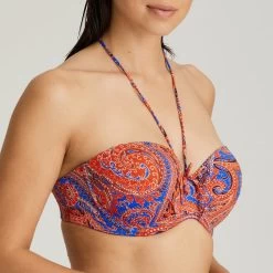 The Casablanca bikini top from Prima Donna is a padded bandeau style with optional multi-way straps. The vibrant paisley “Blue Spice” print adorning the bikini is stunning to behold, and should be worn with the matching Casablanca bikini briefs. Prima Donna’s sublime construction ensures the bikini can be worn as a strapless style without any worries, as underwire, shape and padding in the cup provide support.Â
