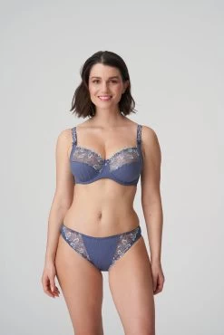 The best selling Deauville from luxury European lingerie designer Prima Donna is a three-piece bra with a legendary fit and an elegant, airy look. A subtle embroidered shimmer on the cups and straps brings a beautiful addition. Wear with any style of matching Deauville briefs for a stunning set. Nightshadow Blue is the most recent seasonal shade, a delicate cool blue that compliments the skin beautifully.