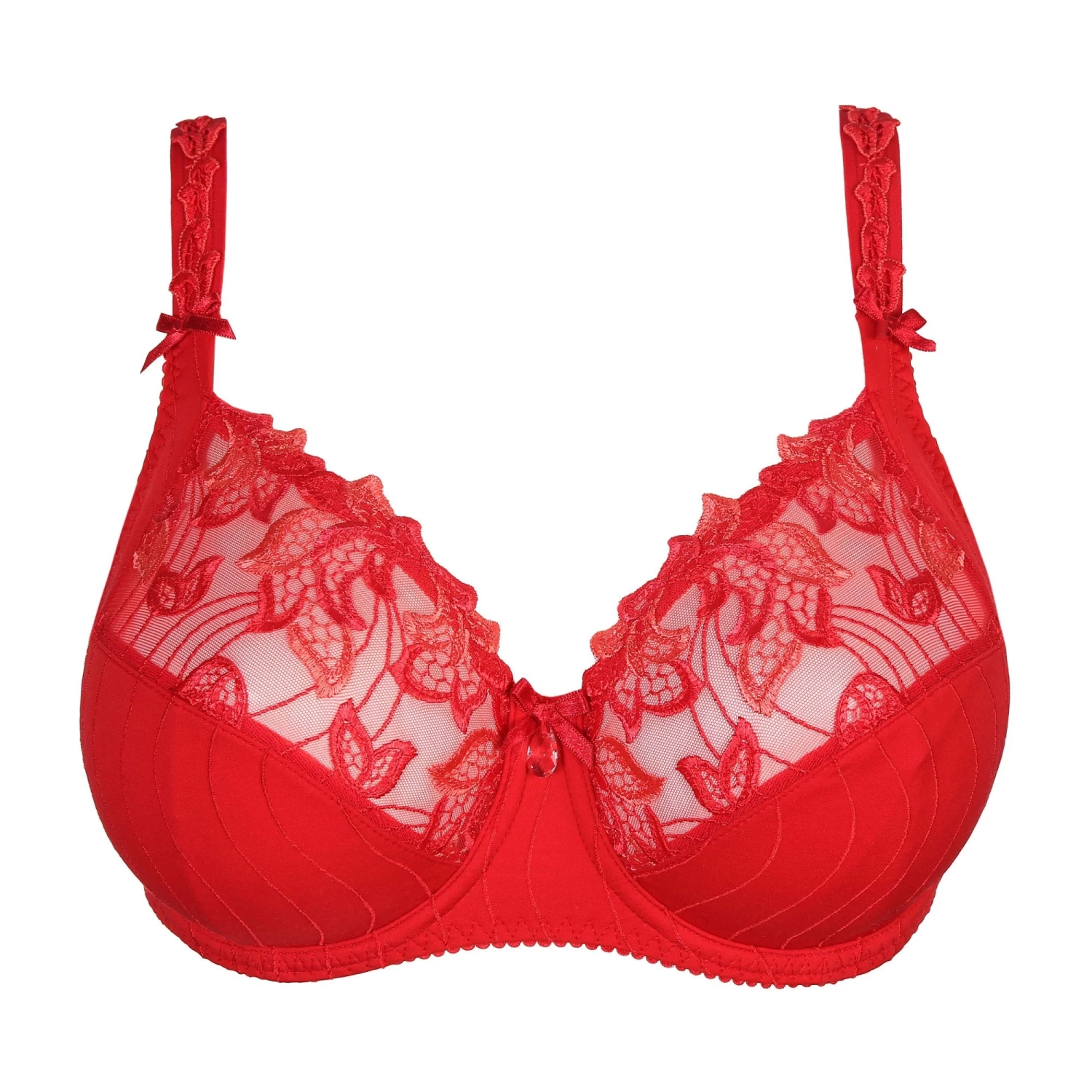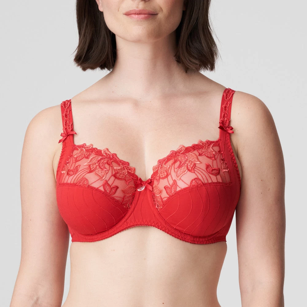 The best selling Deauville from luxury European lingerie designer Prima Donna is a three-piece bra with a legendary fit and an elegant, airy look. A subtle embroidered shimmer on the cups and straps brings a beautiful addition. The new seasonal colour Scarlet is a vibrant red tone. Wear with any style of matching Deauville briefs for a stunning set.Â