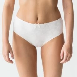 Divine full briefs printed with a feminine lace motif. The ideal choice for lovers of timeless class and a touch of mystery. The full brief style provides modest coverage, sitting low at the leg and high at the waist. Wear with the beautiful Divine strapless bra for a matching set.Â