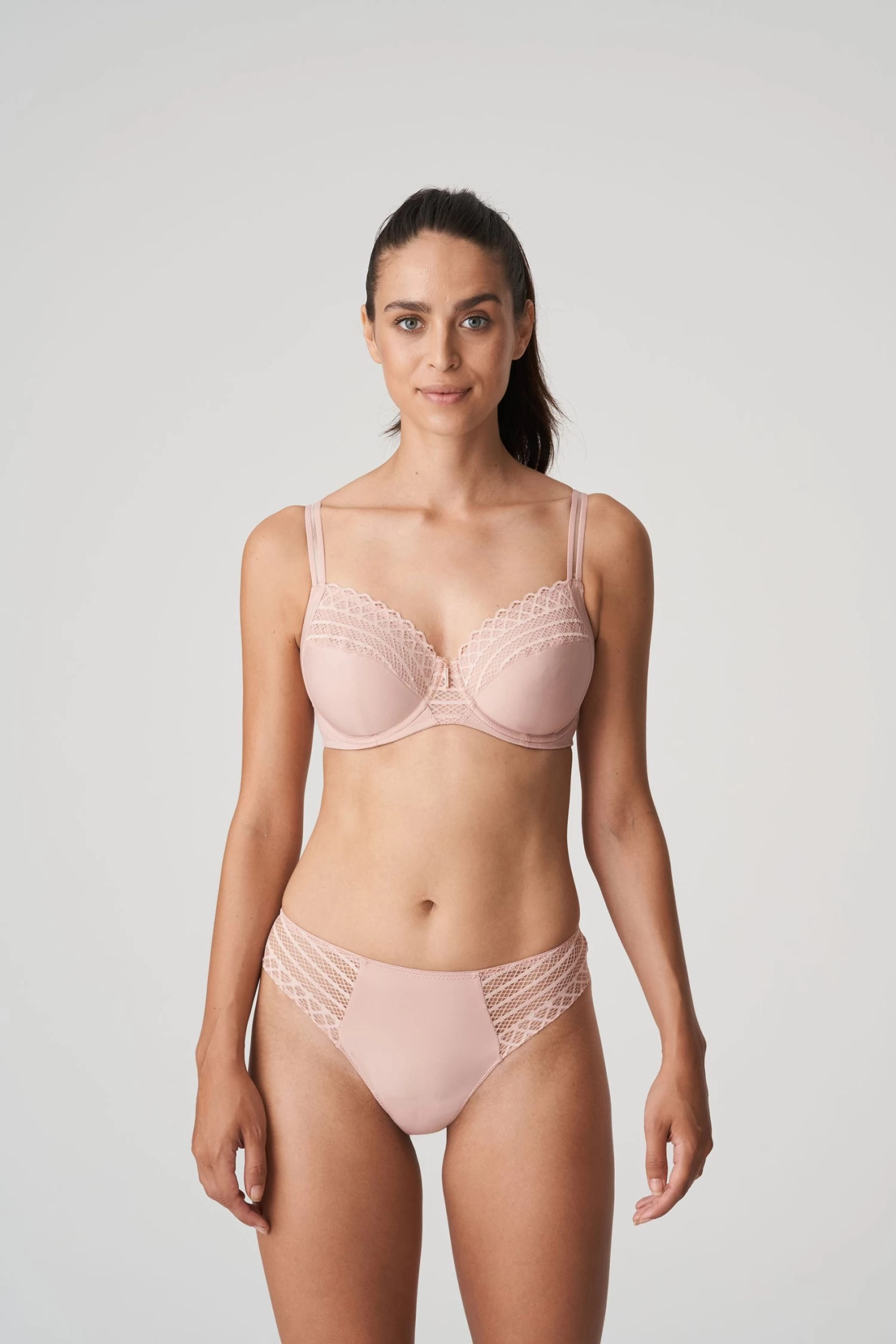 The East End full cup bra from luxury lingerie brand Prima Donna is made with a fantastic fit in mind. It features ever so soft fabric across the cups, with geometric lace at the top to provide a comfortable, easy fit. The minimalistic bra has a hook and eye closure at the back, with adjustable straps for everyone’s comfort. Pair with matching briefs for a stunning set.Â