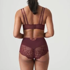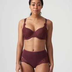 The luxury Belgium brand Prima Donna First Night collection is now in Merlot. The Burgundy and chocolate brown lace decor and straps creates a sensual, spicy look. An addition that only ages better with time!