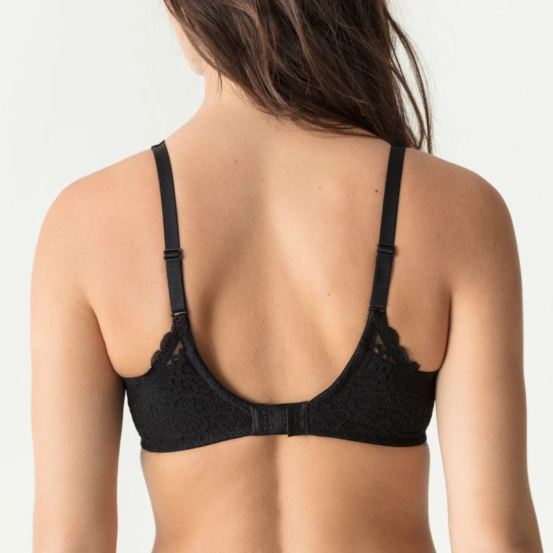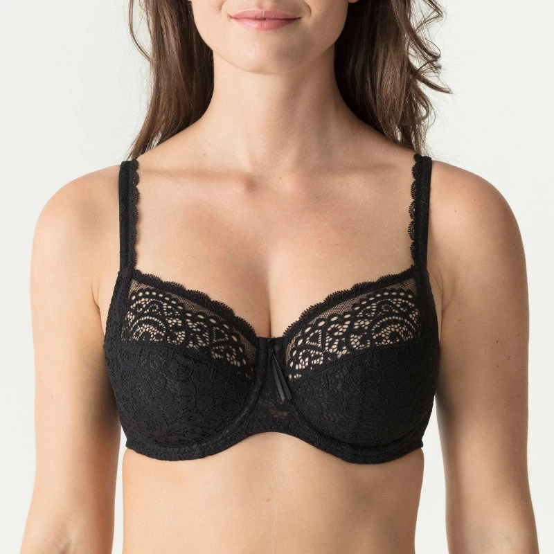 This lovely three section wire bra gives great shape and support. With a trendy oversized lace pattern and a lovely satin tie between the cups, its absolutely beautiful to look at too!