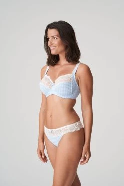 The best selling Madison bra from luxury European lingerie brand Prima Donna is a customer favourite for a reason. With three carefully constructed sections to its cups, the bra gives a beautiful shape to the bust whilst still providing fantastic support and unrivalled comfort. The bottom half of the cup is formed from slightly rigid fabric, whilst the top half is made of a more flexible lace, making the Madison the perfect bra for women with slightly fluctuating cup sizes. Blue Bell is the most recent seasonal colour, a beautiful blend of blue and white check that captures the eye instantly. Wear with matching briefs for a baby blue set.Â